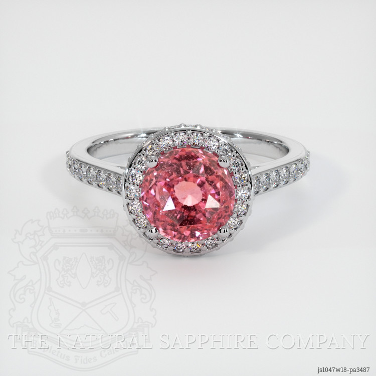 Pave Padparadscha Sapphire Ring 3.07 Ct., 18K White Gold