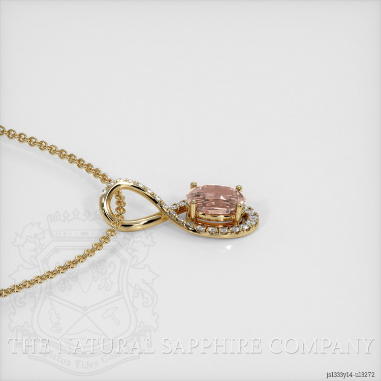 Pave Peach Sapphire Pendant 2.50 Ct., 14K Yellow Gold