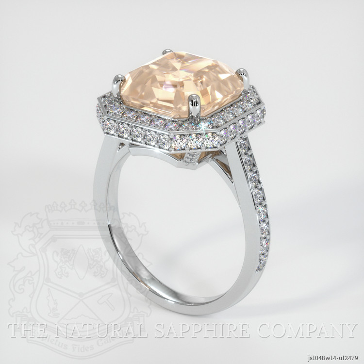 Pave Peach Sapphire Ring 8.27 Ct., 14K White Gold