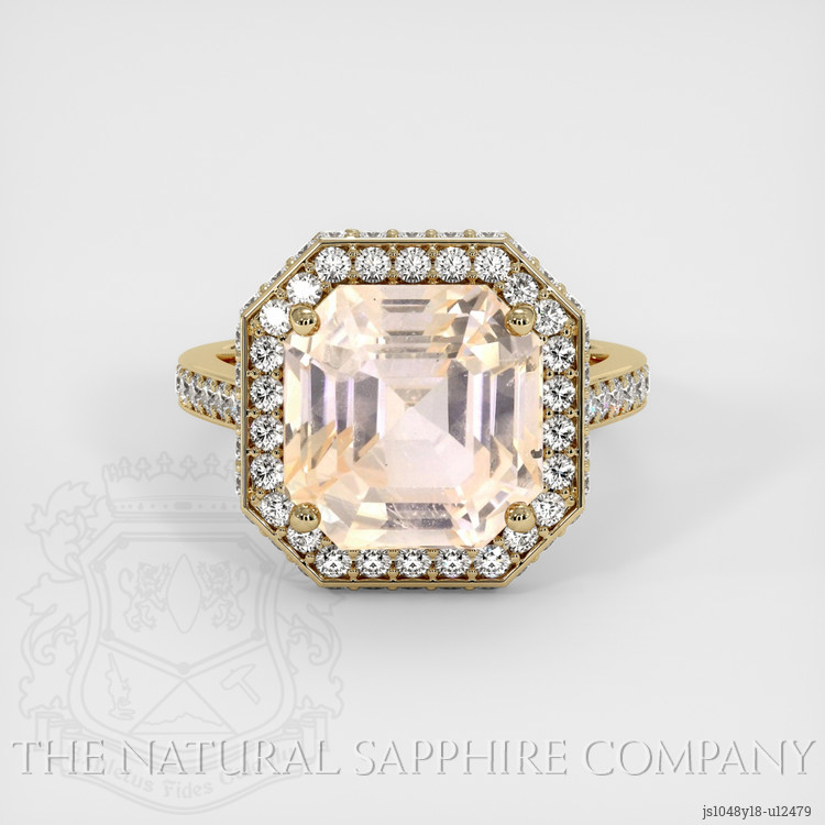 Pave Peach Sapphire Ring 8.27 Ct., 18K Yellow Gold