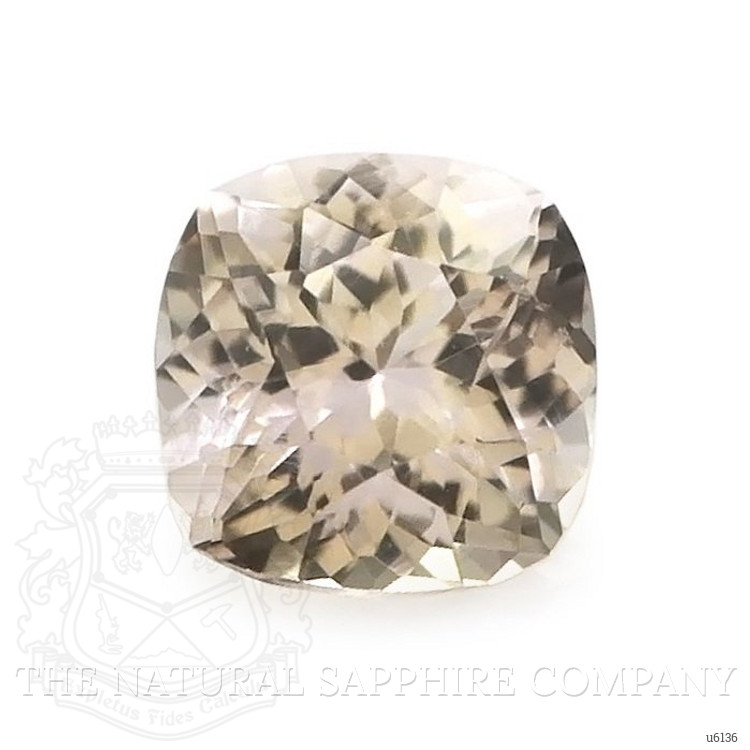 The men's ring features a beautiful, transparent 0.74 carat cushion shape peach sapphire with the dimensions of 5.21 x 5.14 x 3.50 mm and a mixed brilliant cut. It has a clarity grade of very slightly included (evaluated at eye level), medium color saturation, and an excellent polish. The origin of this sapphire is Ceylon (Sri Lanka).