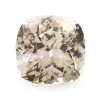 The men's ring features a beautiful, transparent 0.74 carat cushion shape peach sapphire with the dimensions of 5.21 x 5.14 x 3.50 mm and a mixed brilliant cut. It has a clarity grade of very slightly included (evaluated at eye level), medium color saturation, and an excellent polish. The origin of this sapphire is Ceylon (Sri Lanka).