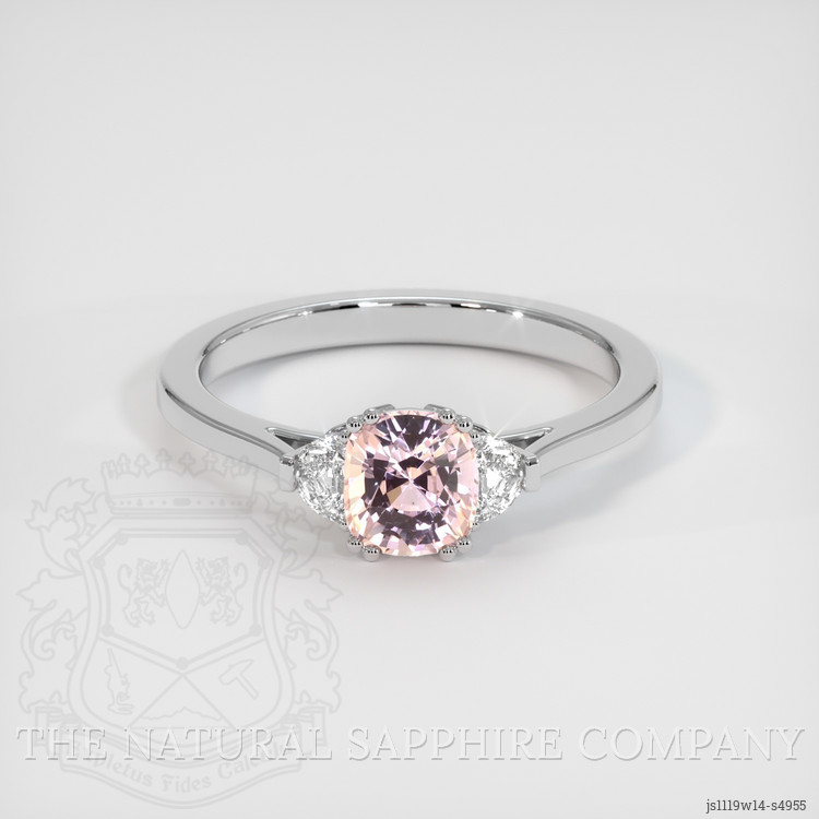 Three Stone Peach Sapphire Ring 1.12 Ct., 14K White Gold