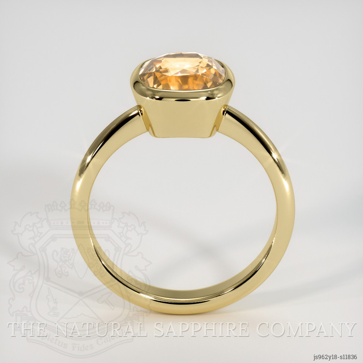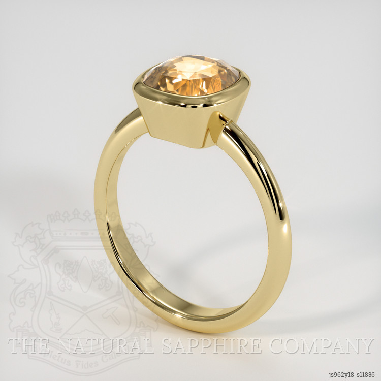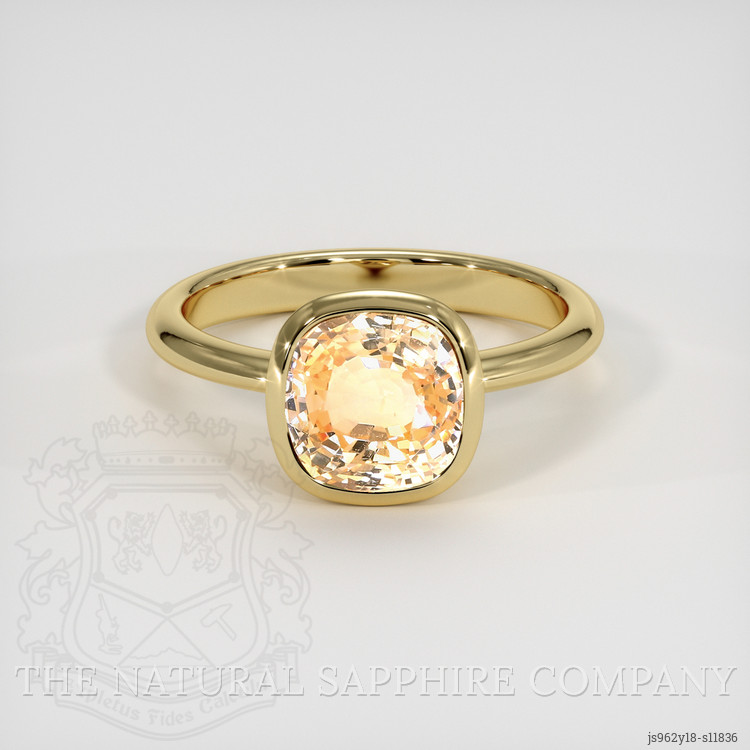 The men’s ring from The Natural Sapphire Company is a celebration of timeless elegance and exceptional craftsmanship. At the heart of this stunning piece is a GIA certified Yellow-Orange peach sapphire, possessing a unique beauty that sets it apart from other gemstones. Weighing in at 4.56 carats, this sapphire takes a magnificent cushion shape, boasting dimensions of 8.67 x 8.44 x 6.20 mm, and is masterfully cut in a radiant style. The radiant cut combines the intricate facets of a traditional round brilliant with the elegant silhouette of an emerald cut, offering unparalleled light performance that disperses light brilliantly across the gem's surface. This allows the sapphire to emit a mesmerizing play of colors, enhancing its vibrant hues with captivating brilliance that few other cuts can match.