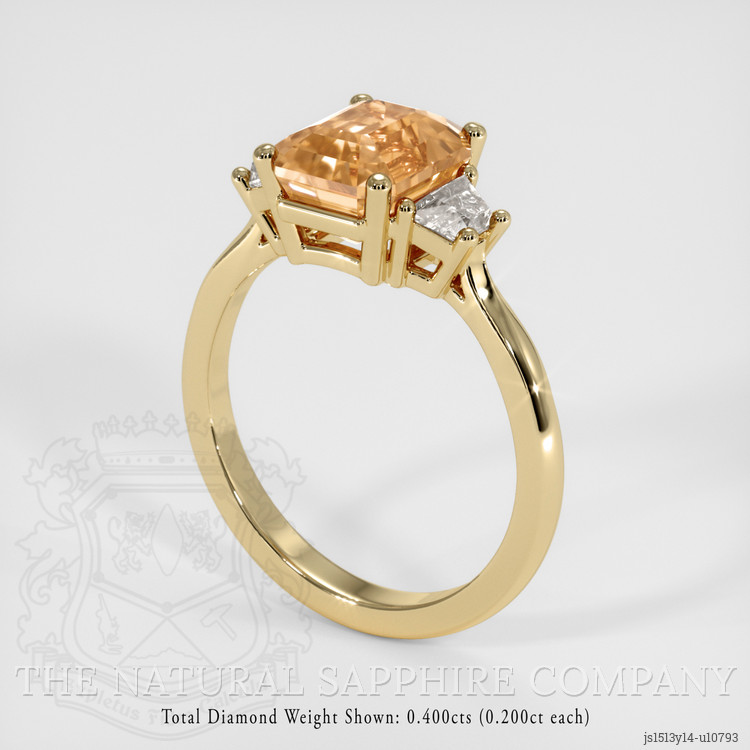 The setting in 14K yellow gold and the pair of white trapezoid diamonds totaling approximately 0.40 carats, clarity VS1 and VS2 and color grade E, form a composition that elevates the center stone while providing visual balance and brightness. Each trapezoid is cut and matched to enhance light return and to frame the sapphire with crisp white flashes, echoing the exacting attention to proportion and finish that you would expect from the finest maisons. At The Natural Sapphire Company our bench work and setting techniques are executed with a level of care and refinement that rivals the precision seen in luxury ateliers, combining the sculptural restraint often associated with historic French houses with the meticulous symmetry and clean profiles admired in iconic American jewelers. The prong construction and gallery details are designed to show the stone to its best advantage while ensuring a comfortable silhouette for everyday wear.