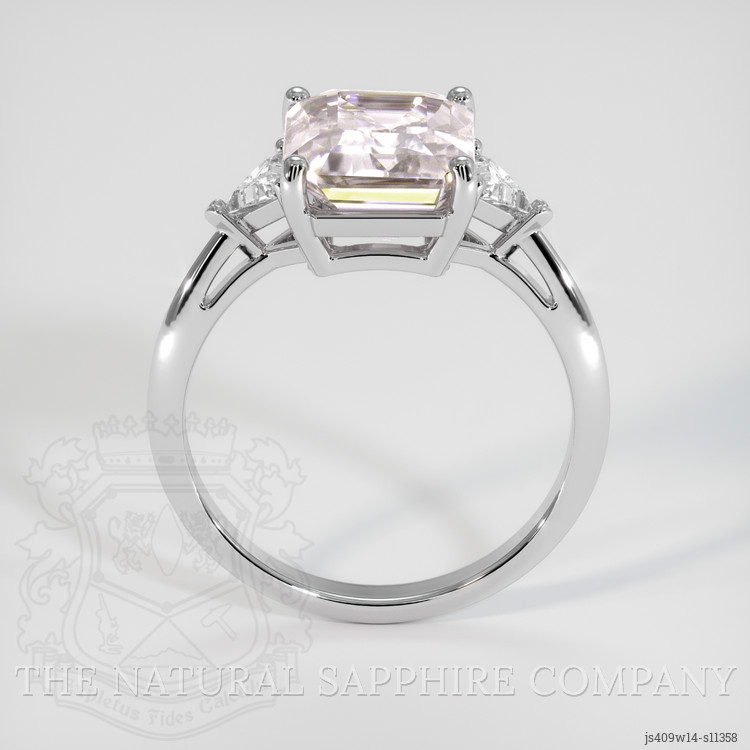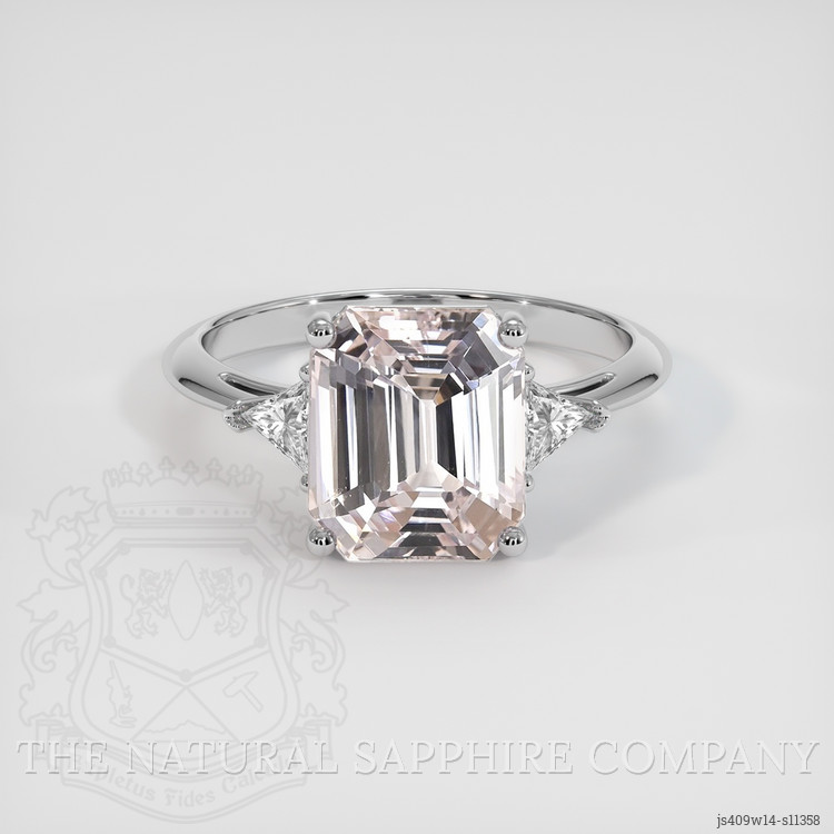 In the heart of the mystical lands of Ceylon, where the air is rich with legend and the soil nurtures some of the world's most exquisite sapphires, a rare gem was born. This splendid piece from The Natural Sapphire Company encapsulates a journey through time. Featuring a 4.09 carat emerald cut peach sapphire, this ring is not just a piece of jewelry but a harmonious blend of history and art. With its dimensions of 9.44 x 8.07 x 5.47 mm and a faint color saturation, the sapphire radiates a subtle elegance, symbolizing the meeting of ancient beauty and contemporary design.