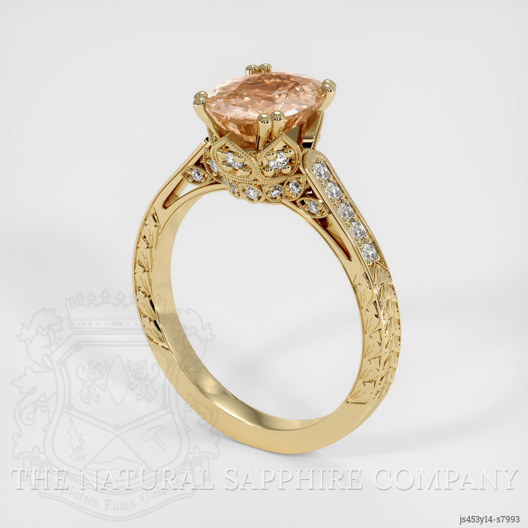 Antique Style Peach Sapphire Ring 1.47 Ct., 14K Yellow Gold