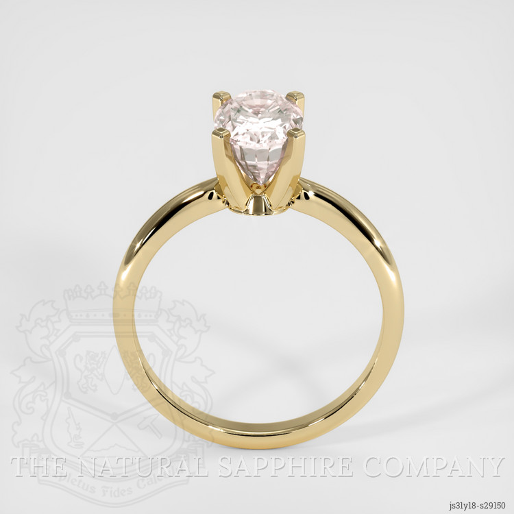 The mounting is crafted entirely in 14 karat yellow gold, a choice that harmonizes beautifully with the warm peach tones of the sapphire while providing a durable and comfortable platform for everyday wear. The design balances elegance with functionality through a classic prong setting that secures the oval stone with minimal metal obstructing light, permitting maximum brilliance and color play, while the prongs are substantial enough to protect the girdle and hold the gem confidently. The band is proportioned to offer a comfortable fit and steady support, and 14 karat yellow gold offers a resilient alloy composition that resists wear while maintaining a warm color that accentuates the subtle rosy undertones of the sapphire. The solitaire interpretation keeps the focus on the center gem, yet the practical construction considers daily use, with thoughtful prong geometry and a ring profile intended to wear well both alone and when paired with other rings.