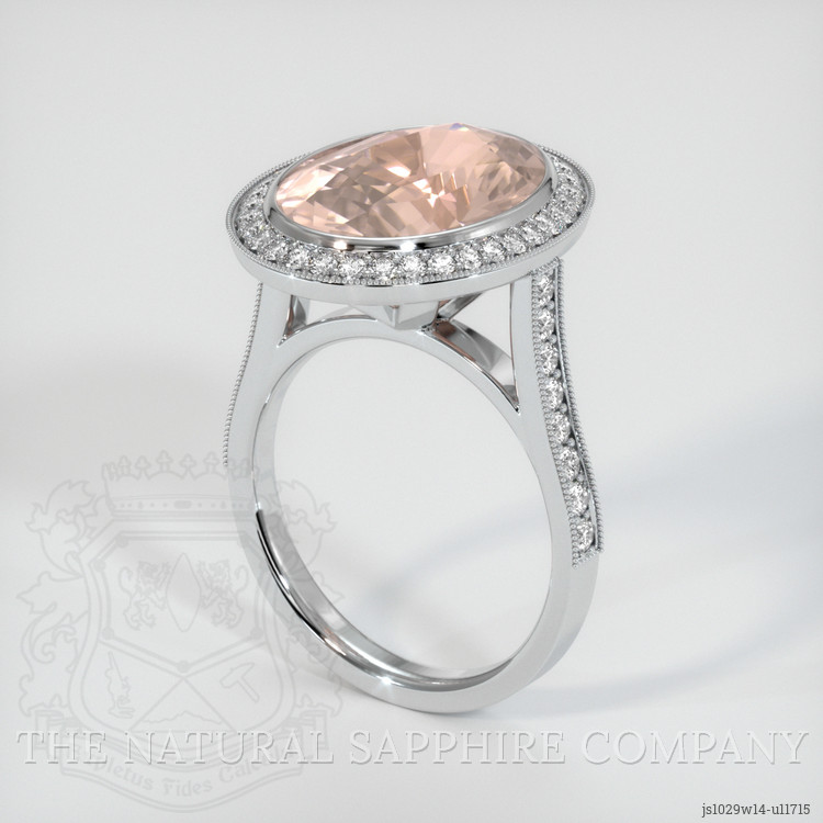 Pave Peach Sapphire Ring 9.68 Ct., 14K White Gold