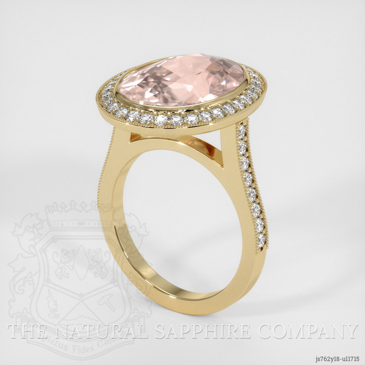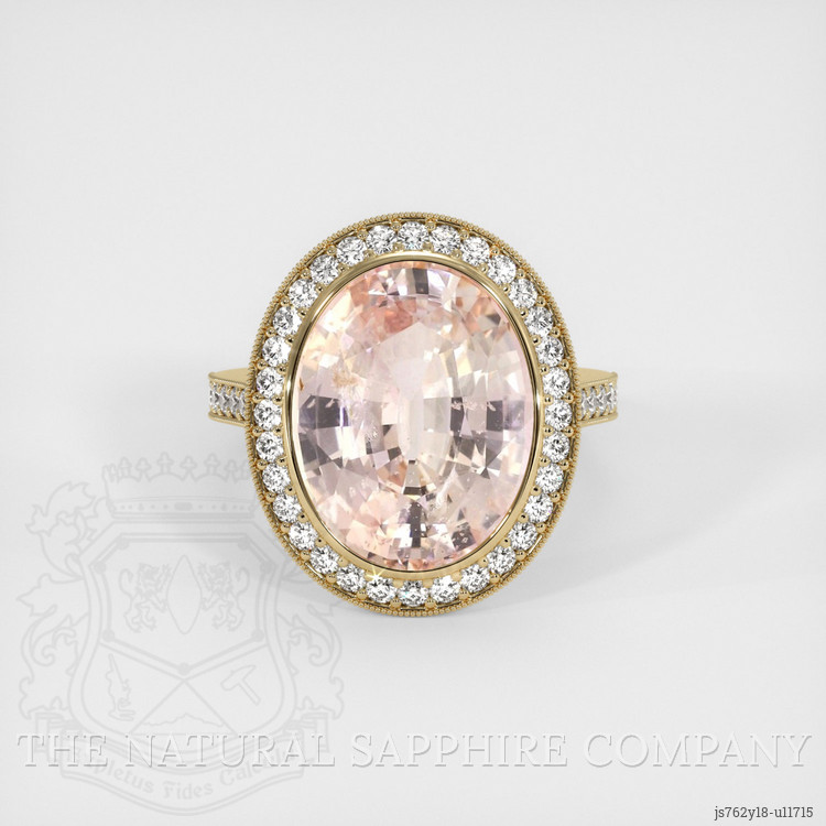 Pave Peach Sapphire Ring 9.68 Ct., 18K Yellow Gold