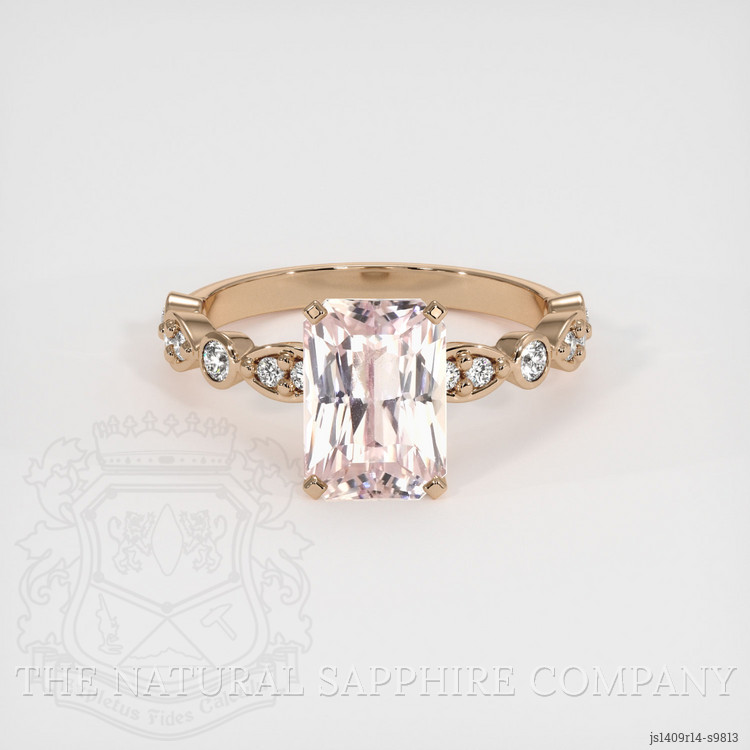 When you're in pursuit of elegance and confidence in a single statement piece, search no further. The Natural Sapphire Company's exquisite ring features a breathtaking 2.57 carat radiant-shaped peach sapphire, originating from the legendary lands of Ceylon. Known for its superior prestige and eye-clean clarity, this gemstone measures 8.29 x 5.88 x 5.00 mm. Its radiant cut burst with unparalleled brilliance and medium color saturation, perfectly highlighted by an excellent polish. Embrace the allure of this rare gem, designed to captivate and enchant with every glance.