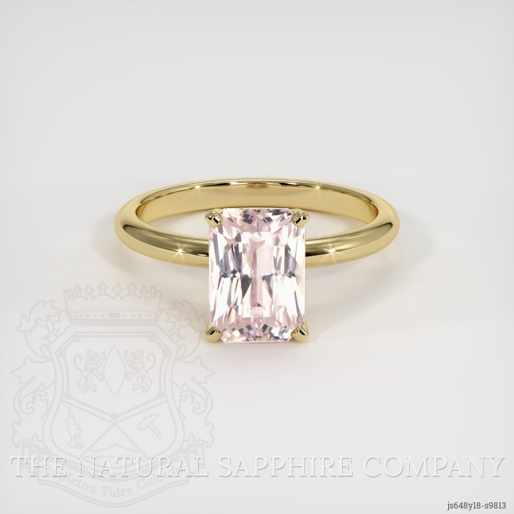 Solitaire Peach Sapphire Ring 2.57 Ct., 18K Yellow Gold