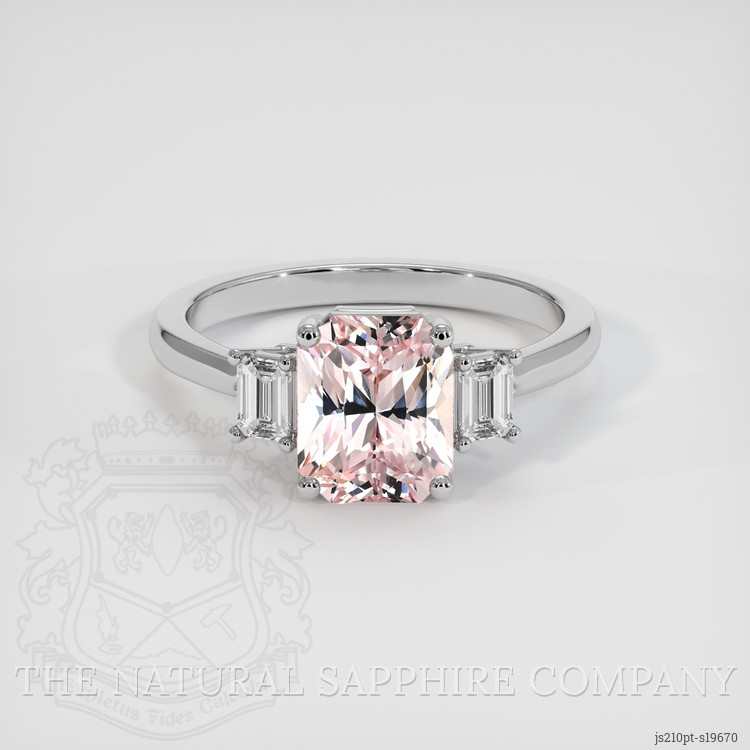 Three Stone Peach Sapphire Ring 3.09 Ct., Platinum 950