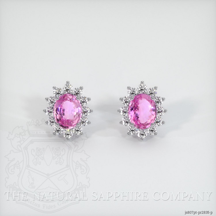 Halo Pink Sapphire Earring 5.03 Ct.Tw.Total Carat Weight, Platinum 950