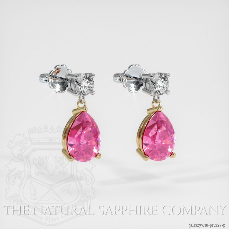 Accent Stones Pink Sapphire Earring 2.22 Ct.Tw.Total Carat Weight, 18K Yellow & White