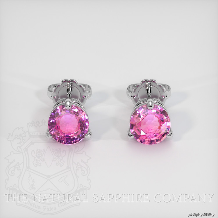 Studs Pink Sapphire Earring 1.96 Ct.Tw.Total Carat Weight, Platinum 950