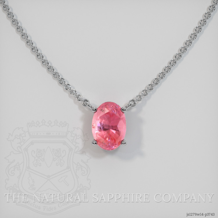 Solitaire Pink Sapphire Necklace 0.89 Ct., 14K White Gold