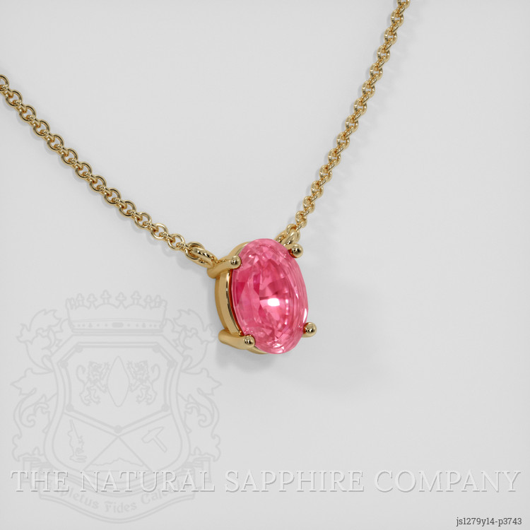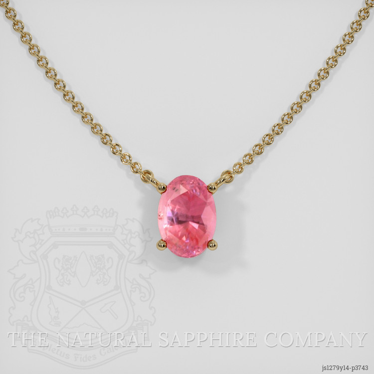 Solitaire Pink Sapphire Necklace 0.89 Ct., 14K Yellow Gold