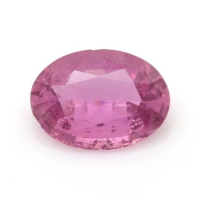The necklace features a beautiful, transparent 1.02 carat oval shape pink sapphire with the dimensions of 8.05 x 5.84 x 2.63 mm and a mixed brilliant cut. It has a clarity grade of very slightly included (evaluated at eye level), medium intense color saturation, and an excellent polish. The origin of this sapphire is Ceylon (Sri Lanka).
