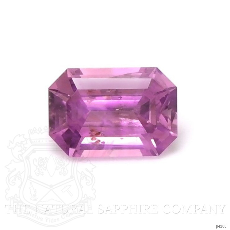 The pendant features a beautiful, transparent 0.63 carat emerald cut shape pink sapphire with the dimensions of 5.90 x 4.08 x 2.88 mm and a emerald cut. It has a clarity grade of slightly included (evaluated at eye level), medium color saturation, and an excellent polish. The origin of this sapphire is Ceylon (Sri Lanka).