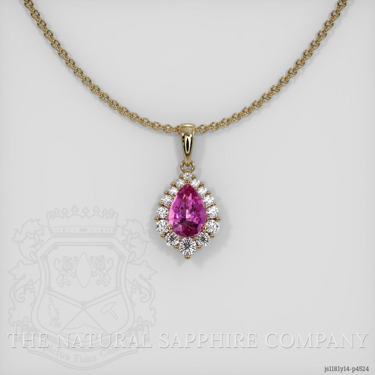 Halo Pink Sapphire Pendant 1.79 Ct., 14K Yellow Gold