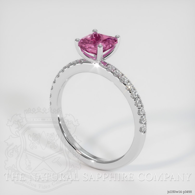 The ring features a beautiful, transparent 1.22 carat asscher - octagon shape pink sapphire with the dimensions of 6.26 x 6.05 x 3.36 mm and a asscher cut. It has a clarity grade of very slightly included (evaluated at eye level), intense color saturation, and an excellent polish. The origin of this sapphire is Ceylon (Sri Lanka).
