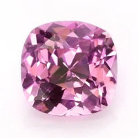 The ring features a beautiful, transparent 0.39 carat cushion shape pink sapphire with the dimensions of 4.26 x 4.24 x 2.73 mm and a mixed brilliant cut. It has a clarity grade of very slightly included (evaluated at eye level), medium intense color saturation, and an excellent polish. The origin of this sapphire is Ceylon (Sri Lanka).