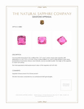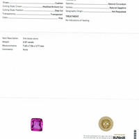 Indulge yourself in the epitome of luxury with The Natural Sapphire Company's exquisite masterpiece, an opulent blend of vibrant elegance and timeless sophistication. At the heart of this creation lies a breathtaking GIA certified 2.07 carat pink sapphire, serving as a testament to our dedication to quality and craftsmanship. This cushion-shaped gem, hailing from the celebrated mines of Ceylon, is admired not only for its striking dimensions of 7.65 x 7.07 x 3.79 mm but also for its remarkable clarity and color. Its eye-clean clarity grade and intense saturation make it a rare jewel among luxury adornments, rivaling and surpassing many high-end rings available today.