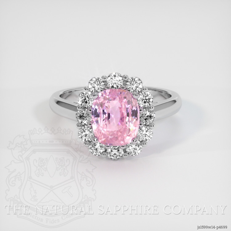 Halo Pink Sapphire Ring 3.04 Ct., 14K White Gold