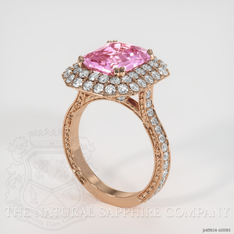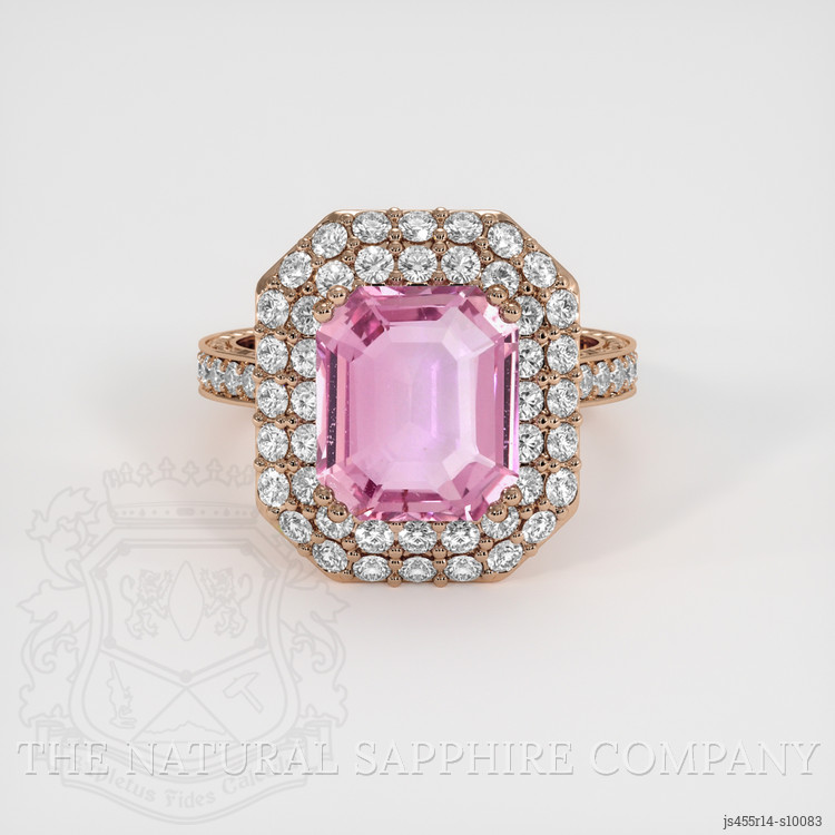 Introducing an exquisite creation by The Natural Sapphire Company, where elegance and sophistication are encapsulated in a singular masterpiece. At the heart of this stunning ring lies an unrivaled 3.08 carat emerald cut pink sapphire, sourced from the renowned mines of Ceylon, Sri Lanka. With dimensions of 9.54 x 8.23 x 3.68 mm, this sapphire captivates the onlooker with its medium color saturation and excellent polish. Its clarity grade is evaluated as very slightly included, ensuring it stands proudly amongst the high-end rings in the market today. The transparent allure of this pink sapphire mirrors the quality that top-tier jewelry aficionados seek, making it an optimal choice for those with a refined taste.