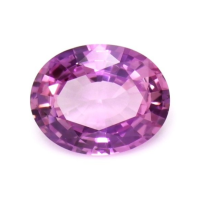 The ring features a beautiful, transparent 0.89 carat oval shape pink sapphire with the dimensions of 6.93 x 5.52 x 2.97 mm and a mixed brilliant cut. It has a clarity grade of eye clean (evaluated at eye level), intense color saturation, and an excellent polish. The origin of this sapphire is Ceylon (Sri Lanka).