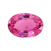 The ring features a beautiful, transparent 1.48 carat oval shape pink sapphire with the dimensions of 8.25 x 5.76 x 3.49 mm and a mixed brilliant cut. It has a clarity grade of eye clean (evaluated at eye level), intense color saturation, and an excellent polish. The origin of this sapphire is Ceylon (Sri Lanka).