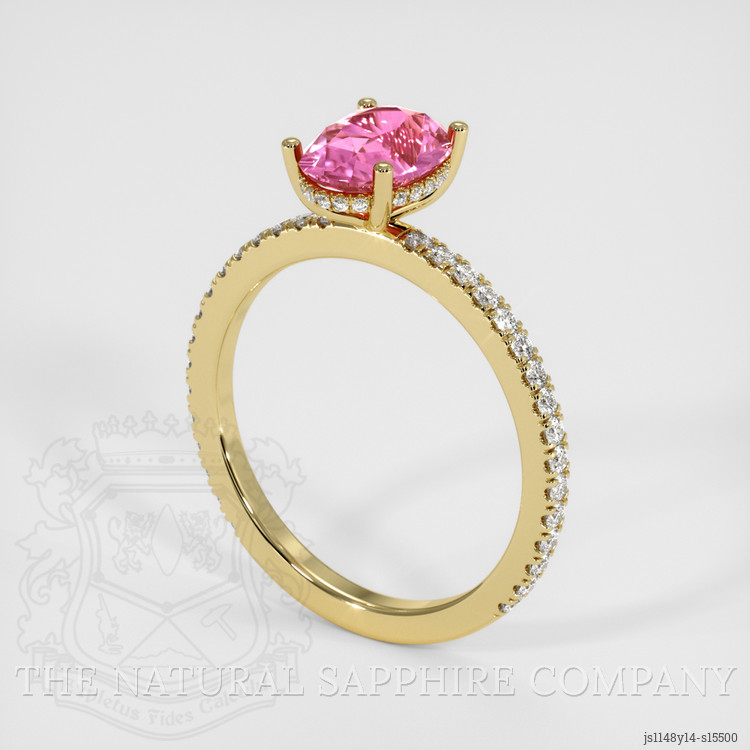 Set in 14K yellow gold, this pink sapphire is part of an ensemble that includes white round shaped natural diamonds totaling approximately 0.683 carats. These diamonds, with a clarity grade of VS and a color grade of F/G, amplify the ring’s radiance and demonstrate our dedication to quality. The contrast between the vibrant warmth of the gold and the gentle caress of the pink sapphire creates a harmonious piece that tells a story of elegance and sophistication. Each element of this ring has been chosen with careful consideration, allowing the gemstones to shine in their natural beauty. This ring is more than just a piece of jewelry; it is a story—one that connects its wearer to the rich tapestry of earth's treasures, crafted timelessly by The Natural Sapphire Company.
