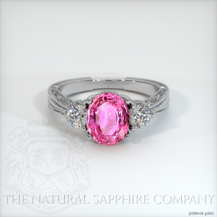 Antique Style Pink Sapphire Ring 2.09 Ct., 18K White Gold