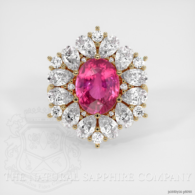 Halo Pink Sapphire Ring 4.88 Ct., 14K Yellow Gold