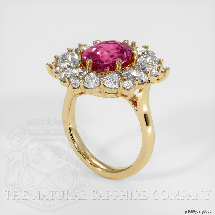 Halo Pink Sapphire Ring 4.88 Ct., 18K Yellow Gold