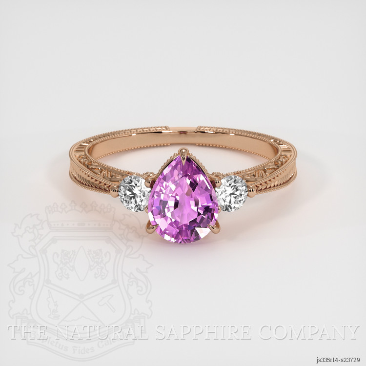 Indulge in the epitome of luxury with The Natural Sapphire Company’s exquisite ring, a masterpiece that captures elegance and sophistication in every facet. At its heart lies a breathtaking 2.18 carat pear-shaped pink sapphire from the exotic lands of Madagascar. This gem is a symphony of transparency and allure, with dazzling dimensions of 9.07 x 7.07 x 4.37 mm and a mixed brilliant cut that radiates brilliance from every angle. The sapphire’s eye-clean clarity, medium color saturation, and exceptional polish create a spellbinding display that invites admiration and envy alike. Enhanced through delicate heat treatment, this sapphire embodies the finest qualities of natural gemstones while showcasing an unparalleled depth of color and luster.