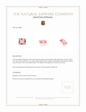 The ring features a beautiful, transparent 0.40 carat princess shape pink sapphire with the dimensions of 4.68 x 4.03 x 2.21 mm and a princess cut. It has a clarity grade of eye clean (evaluated at eye level), medium color saturation, and an excellent polish. The origin of this sapphire is Ceylon (Sri Lanka).