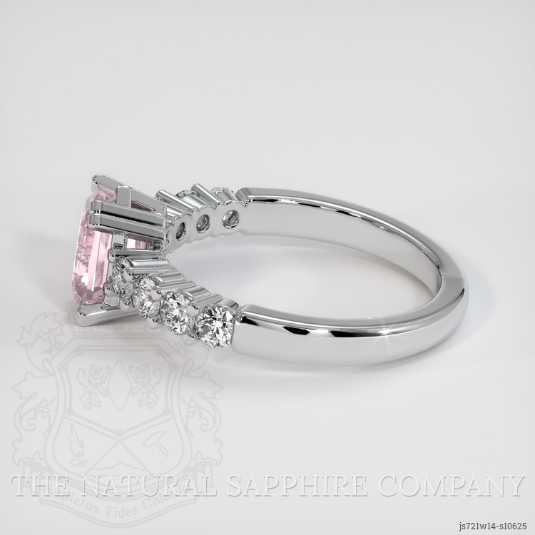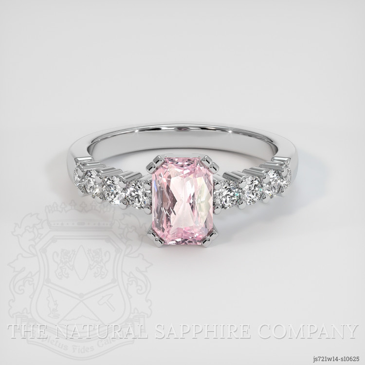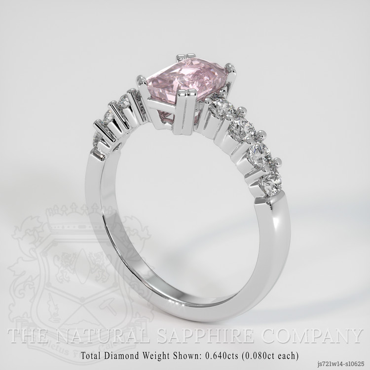 The journey from nature’s embrace to becoming the focal point of a stunning ring is a testament to the artistry and precision involved at The Natural Sapphire Company. Set in 14K white gold, the pink sapphire finds its rightful place among a carefully selected array of white round-shaped diamonds. Each diamond, perfectly arranged, weighs approximately 0.64 carats combined. With a clarity grade of VS1 and VS2, and a color grade of F, these diamonds are more than mere companions to the sapphire. They are integral to showcasing the sapphire’s splendor. Their pristine facades enhance the gemstone's delicate pink hue, making it the undeniable star of this exquisite piece.