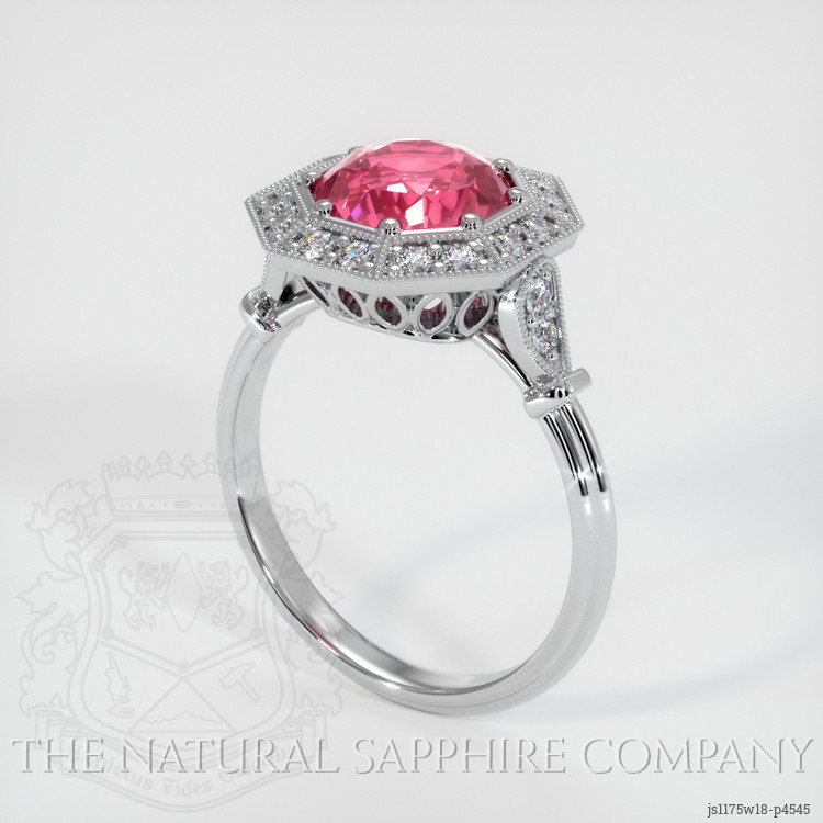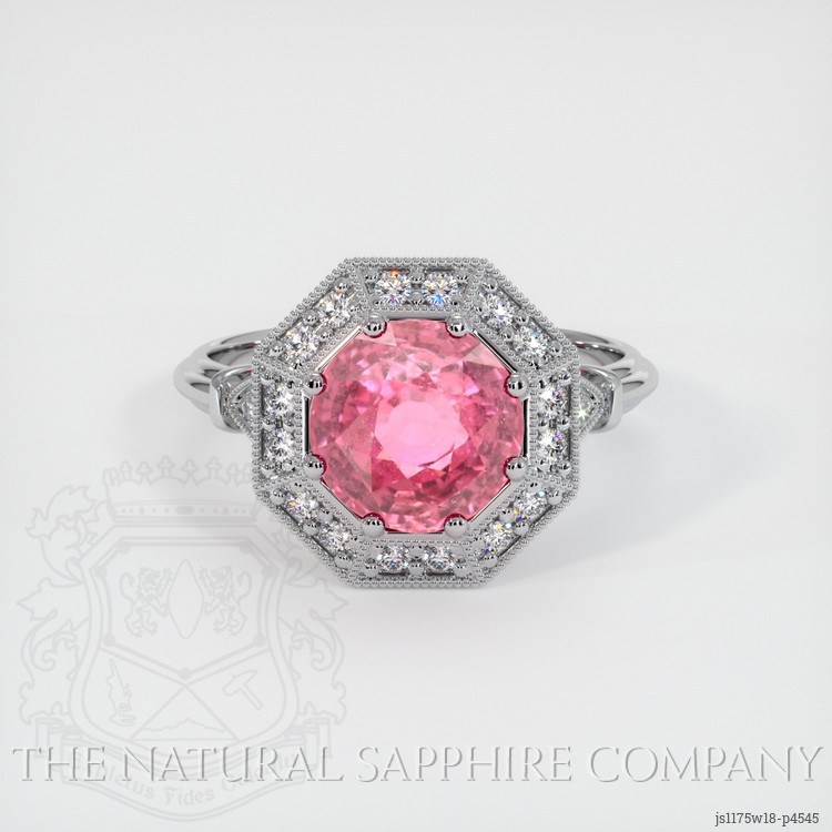 Antique Style Pink Sapphire Ring 3.09 Ct., 18K White Gold