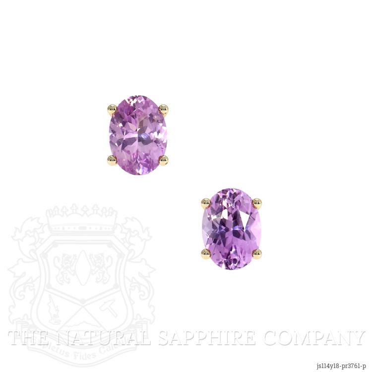 Studs Pinkish Purple Sapphire Earring 1.79 Ct.Tw.Total Carat Weight, 18K Yellow Gold