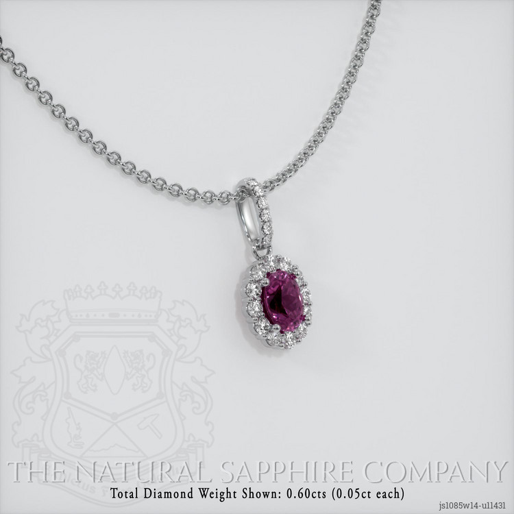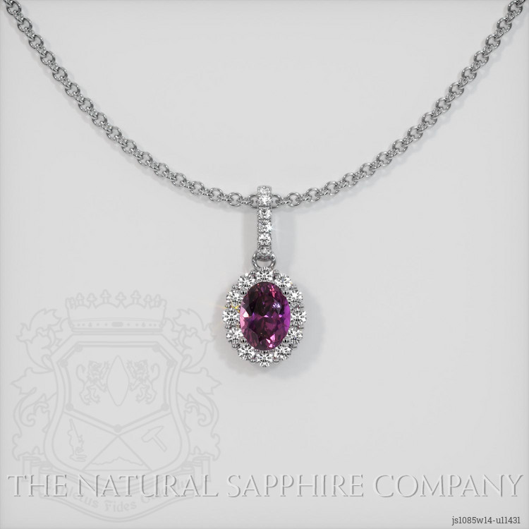 Halo Pinkish Purple Sapphire Pendant 1.41 Ct., 14K White Gold