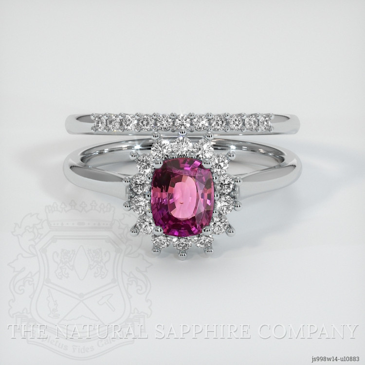 Halo Pinkish Purple Sapphire Ring 1.16 Ct., 14K White Gold