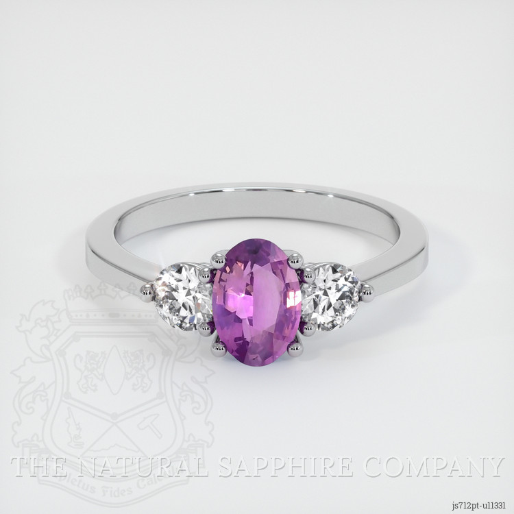 Three Stone Pinkish Purple Sapphire Ring 0.80 Ct., Platinum 950
