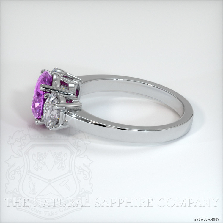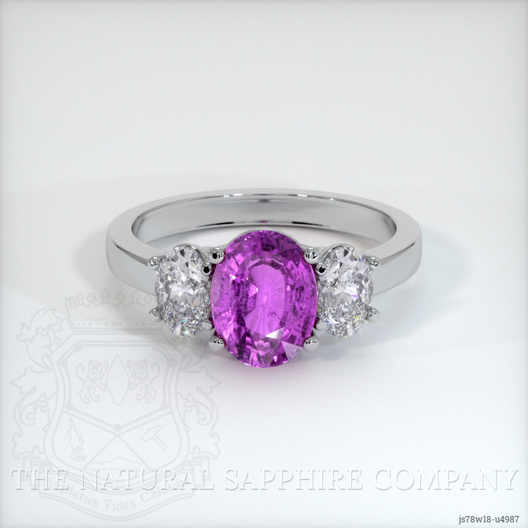 Three Stone Pinkish Purple Sapphire Ring 2.55 Ct., 18K White Gold