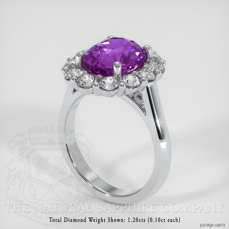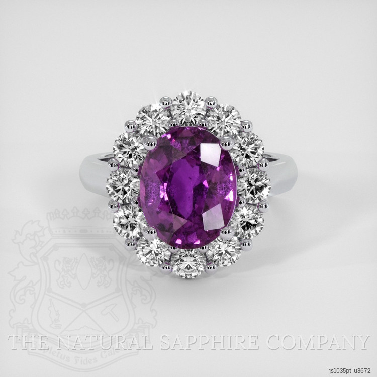 Halo Pinkish Purple Sapphire Ring 3.68 Ct., Platinum 950