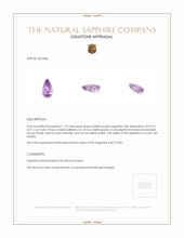 At The Natural Sapphire Company, we believe every piece of jewelry should tell a story, a tale of love, commitment, and celebration. Allow us to introduce you to a uniquely crafted ring that does just that. This exquisite piece captures the essence of romance with a stunning 1.19 carat pear-shaped pinkish purple sapphire. Hailing from the lush landscapes of Ceylon, this gem stands as a testament to the beauty nature can offer. The stone's incredible clarity and intense color saturation transform it into a captivating symbol of passion and sophistication. The transparency of this sapphire whispers secrets of love that only you two share, making it an eternal heirloom of your journey together.