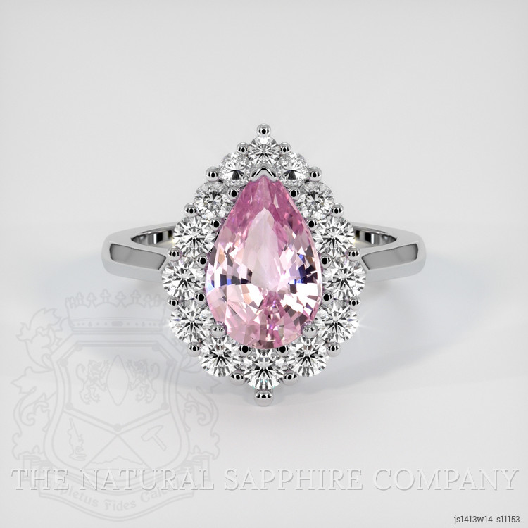 The captivating pink sapphire finds its perfect setting surrounded by a halo of meticulously chosen white diamonds whose pristine clarity of VS1/VS2 illuminates the centerpiece with a celestial brilliance. The diamonds in this ring total approximately 0.68 carats with a consistent F color grade. Their placement is a masterful orchestration of symmetry and sophistication. The round shapes of these diamonds dance in unison weaving an enchanting embrace around the sapphire’s pear shape. This intricate design is not just a tribute to haute jewelry but also a promise of daily luxury.