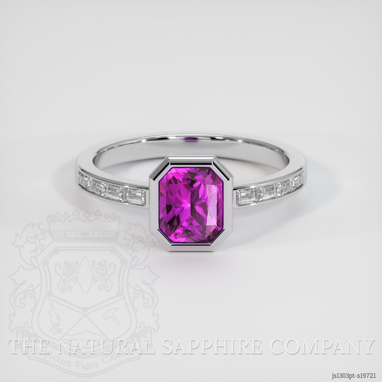 Introducing our exquisite sapphire ring, a true testament to the elegance and grandeur valued by connoisseurs of fine jewelry. This remarkable piece, expertly curated by The Natural Sapphire Company, features a stunning 1.71-carat radiant shape sapphire sourced from the enchanting lands of Ceylon, Sri Lanka. Known for their exceptional quality and vivid hues, Ceylon sapphires are the epitome of beauty and sophistication, treasured through the ages. This particular sapphire boasts a mesmerizing pinkish-purple hue, a radiant cut that amplifies its brilliance, and dimensions of 7.45 x 6.15 x 3.96 mm. Its clarity is graded as very slightly included when evaluated at eye level, assuring a pristine view, further enhanced by vivid color saturation and excellent polish.