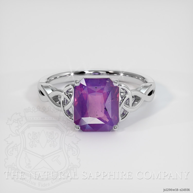 Celtic Pinkish Purple Sapphire Ring 4.05 Ct., 18K White Gold